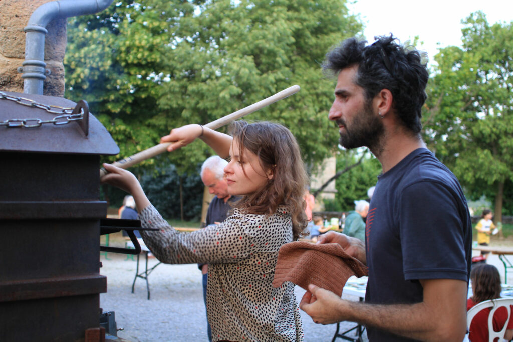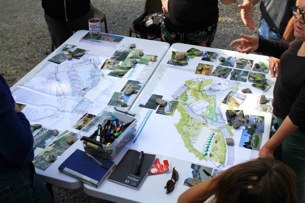 Dès la première résidence, en mars 2023, l’ancienne serre du curé s’est transformée en maison du projet – « la Serre a quoi ». Lieu repère pour les habitants tout au long de l’étude, en attendant le démarrage des travaux en régie et en chantiers participatifs. L’étude a été rythmée par des rencontres, des temps publics, des ateliers avec l’école,… et une belle soirée de clôture « confection de pizza » grâce au prêt du four à pain mobile des boulangers de Chirols.